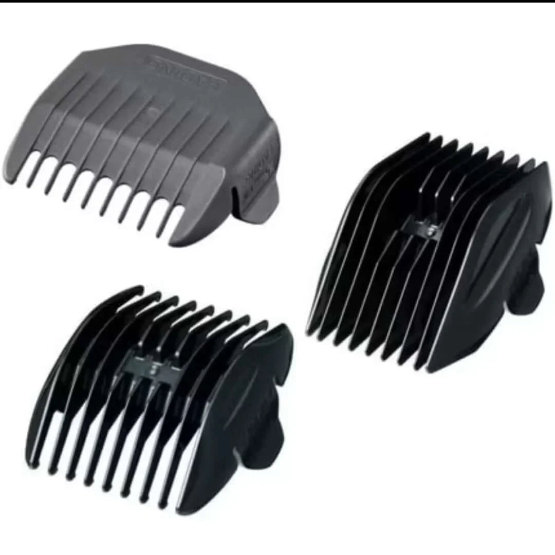 Useita lisäkammat: Sisältää kammat eri leikkuupituuksille (1,5–2,7 mm, 3/4 mm, 6/9 mm, 12/15 mm).