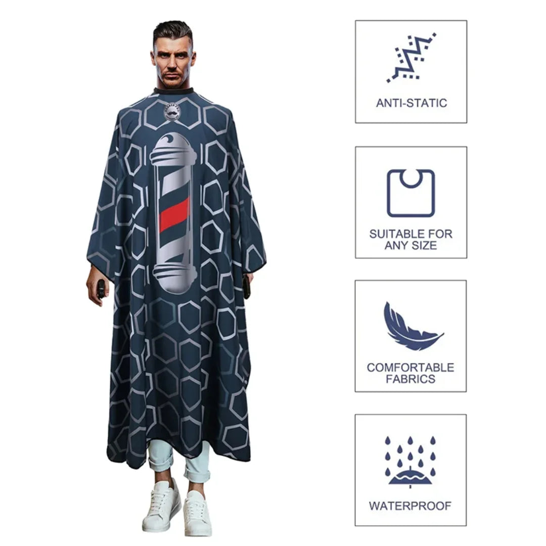 Esittelyssä uuden sukupolven vedenpitävä polyesterinen parturiviitta (Vedenpitävä polyesteri-parturiviitta)! Tämä viitta on suunniteltu erityisesti ammattilaiskäyttöön. Sen ainutlaatuinen, korkealaatuinen polyesterikangas (korkealaatuinen polyesterikangas) on täysin vettä hylkivä.