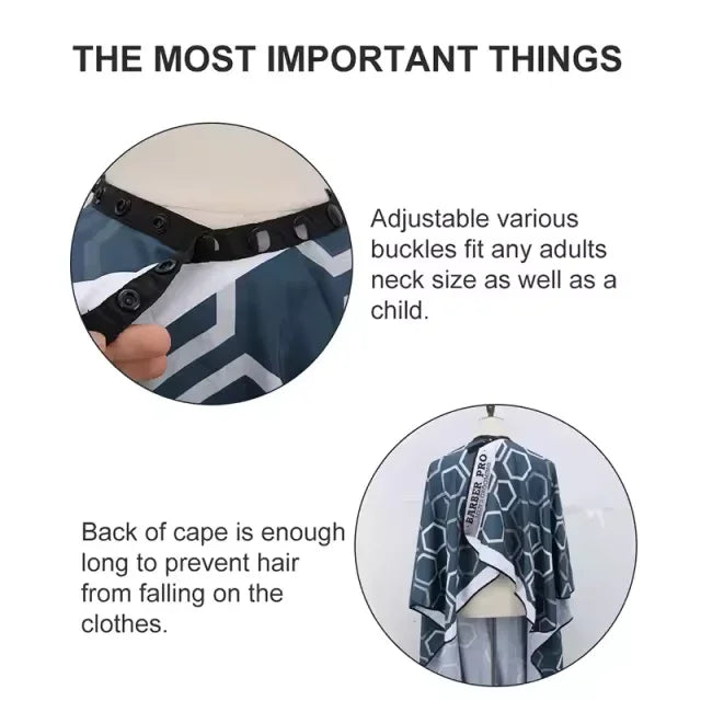 Tämä viitta ei ole vain käytännöllinen, vaan myös esteettinen. Siinä on säädettävä ja kestävä kaulakiinnitys (säädettävä kaulakiinnitys), joka sopii kaikenkokoisille asiakkaille, varmistaen tiiviin suojan ilman epämukavaa kiristystä. Reilu koko takaa sen, että asiakkaan syli ja jopa jalat pysyvät suojassa.